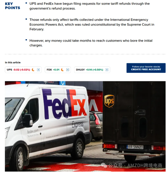 美国最高法院的一纸判决,正在引发一场大规模的“资金回流”。AMZDH获悉,随着美国海关退款门户(CAPE)本周一正式开放,FedEx、UPS、DHL三大物流巨头已正式启动关税退还流程,将对此前被裁定无效的关税进行自动返还。