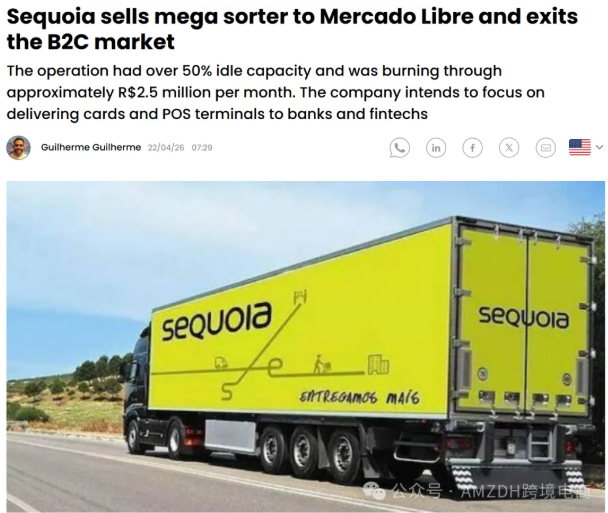 AMZDH获悉,近日巴西物流商红杉物流(Sequoia Logística)正式宣布,将其部分电商大件物流运营资产以750万美元出售给拉美电商巨头美客多(Mercado Libre)。此举标志着红杉物流彻底退出电商大件物流领域,也意味着美客多在巴西的物流版图通过“资产并购”实现了低成本快速扩张。