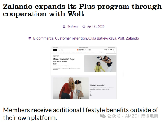 欧洲时尚电商巨头 Zalando 正在打破行业的次元壁。4月23日,Zalando 宣布其会员计划 Zalando Plus 首次跨界合作,与食品配送平台 Wolt+ 达成权益互通。这标志着电商平台的忠诚度大战,已从单纯的“购物折扣”升级为“生活方式绑定”。